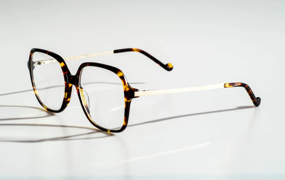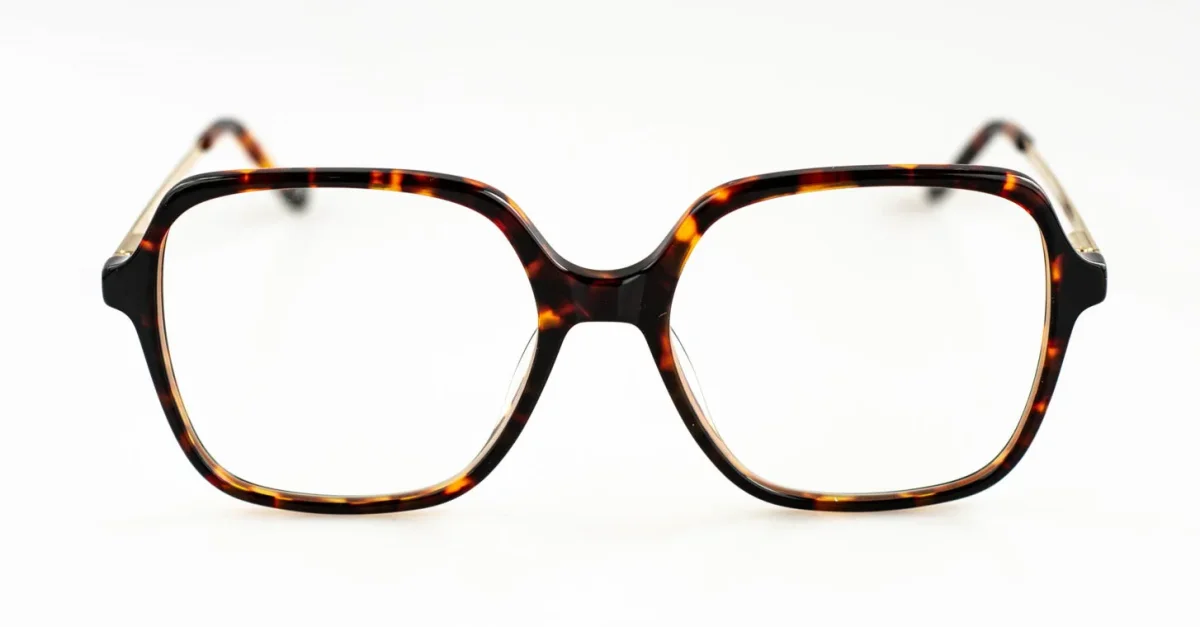 Ny trendig retroinspirerad modell i fyrkantig form. Bågen är i hållbar acetatplast och skalmar av guldfärgad metall. Skalmarna är flexande som gör att de håller formen länge. Passar alla ansiktsformer.