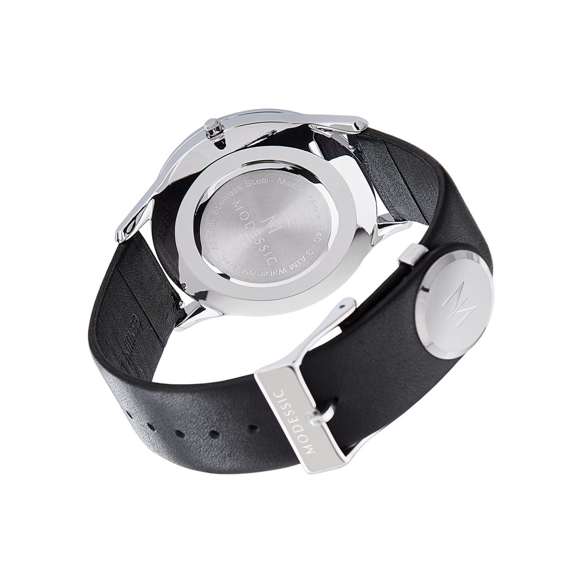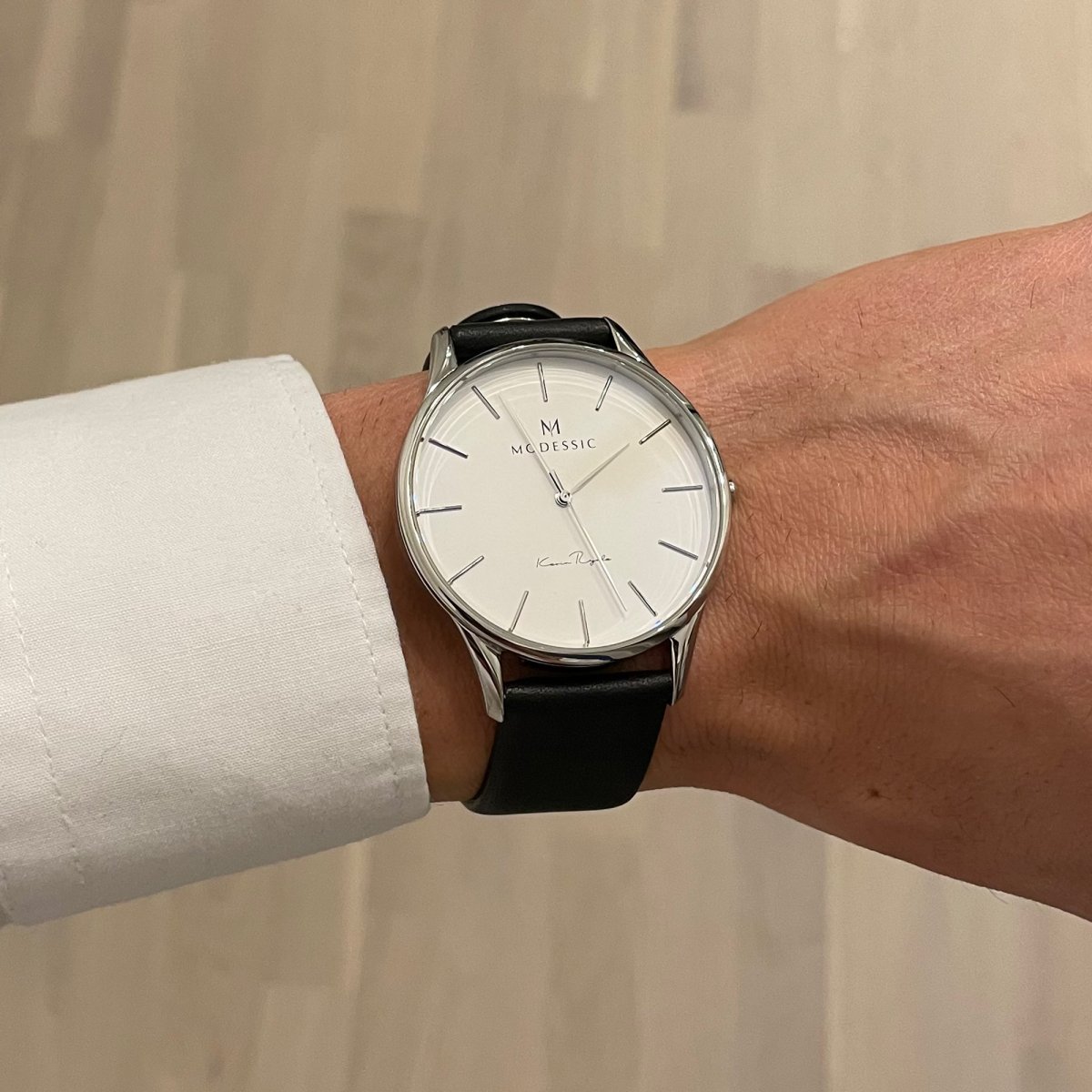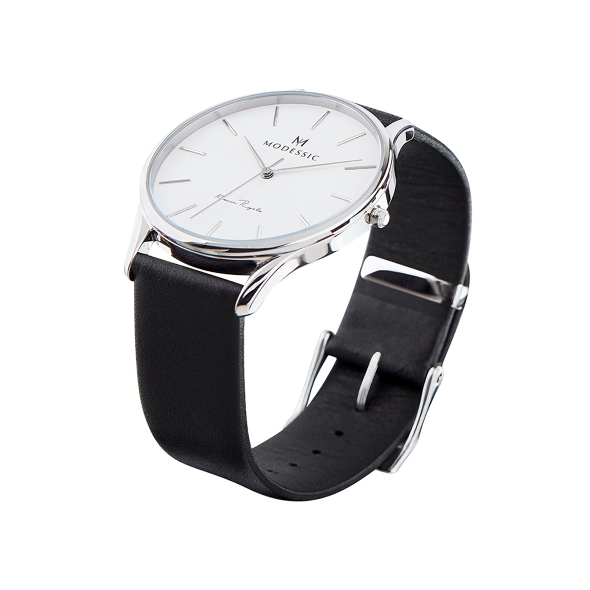 En snygg Visionary Shadow vit silver svart klassisk herrklocka från Modessic är mycket mer än bara en armbandsklocka. En Visionary Shadow är den perfekta följeslagaren i din look! Modessics unika sortiment av klassiska damklockor och klassiska herrklockor bryter mot regeln att det moderna och det klassiska är motpoler. Modessic kombinerar klassiska element och modern design, i en och samma klocka. Modessics ledord för alla våra klassiska klockor: är tunn, sofistikerad och mångsidig. Varenda detalj är noggrant utformad för att säkerställa att alla våra klockor lever upp till de absolut högsta kvalitetsstandarder. Vårt eliteteam drivs av en passion för högkvalitativ och förstklassig design. Varje Modessic klocka är utformad med utsökt finess och kreativitet. Känslan av kvalitet och hantverksmässighet återspeglas i varenda detalj på urtavlan, klockarmbandet och klämman. Vår designskyddade klämma skapar en unik passform som du inte hittar hos andra klockmärken. De utbytbara remmarna gör det enkelt att anpassa din Visionary Shadow vit silver svart klassisk herrklocka till olika sammanhang. Kombinationsmöjligheterna blir oändliga, med en mycket fin, elegant och tunn klassisk design som är lika bekväm som iögonfallande. Modessic ger dig en ny upplevelse av tiden. Våra klassiska klockor är inte bara vackra, de blir en del av din personlighet. Hos Modessic kan du köpa din Visionary Shadow vit silver svart klassisk herrklocka snabbt och enkelt online. Om du inte vill ha just en Visionary Shadow kan du välja bland ett stort sortiment av stilrena klassiska klockor att dekorera din handled med. Vårt klocksortiment består uteslutligen av exklusiva, väldesignade klassiska armbandsklockor, där en klocka gör så mycket mer än att bara visa tiden. Bland Modessics klockor hittar du även klockor i flera olika storlekar för både kvinnor och män, klockor med olika och unika urtavlor, med mycket mera. Oavsett vilken stil du föredrar finns din nästa klocka hos Modessic. Varmt välkommen!