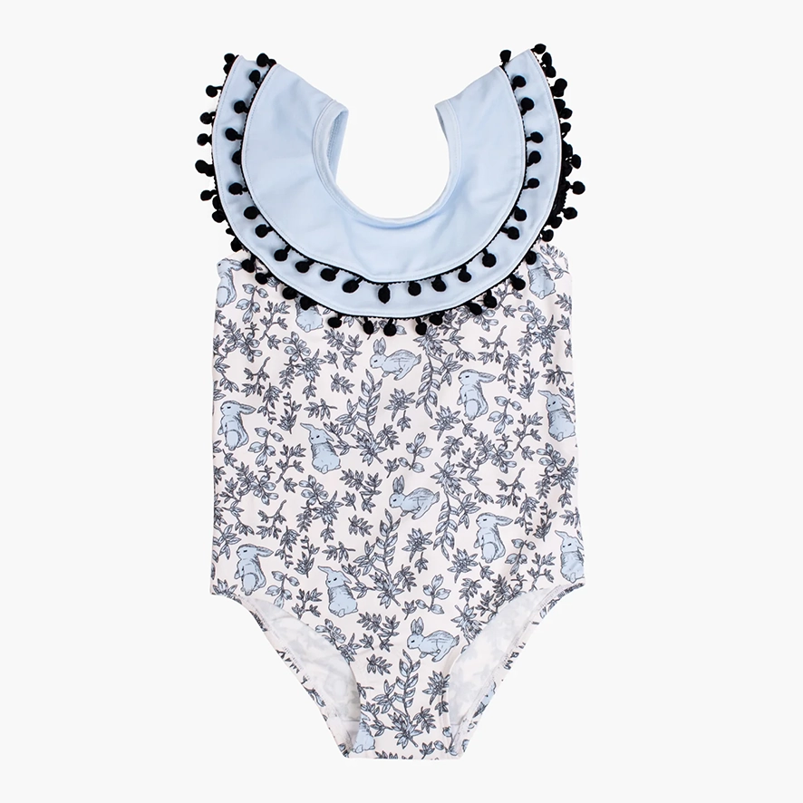 Årets Celine Swimsuit är äntligen här och kommer vårt Wallpaper print med en magisk volang upptill och pompoms runt ringningen. Baddräkten är ett måste i sommar-garderoben och passar lika bra på stranden som i poolen, redo för lek och bad!