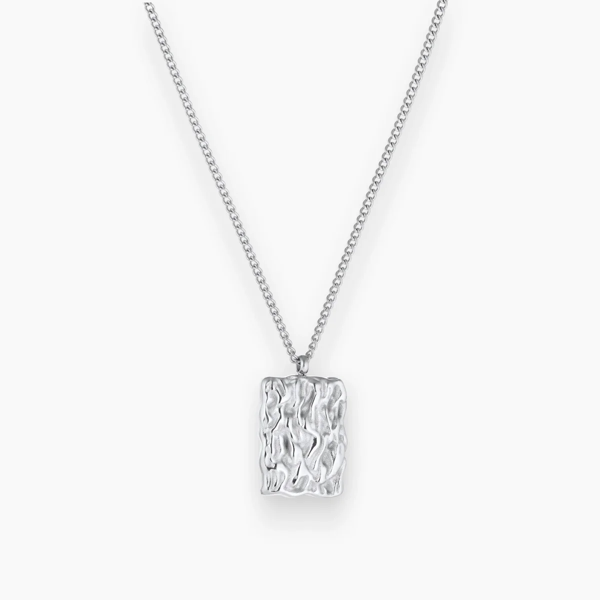 Halsband med personlig gravyr i rostfritt stål. Snygg och stilren design med ett fyrkantigt hängsmycke i en wavy finish.